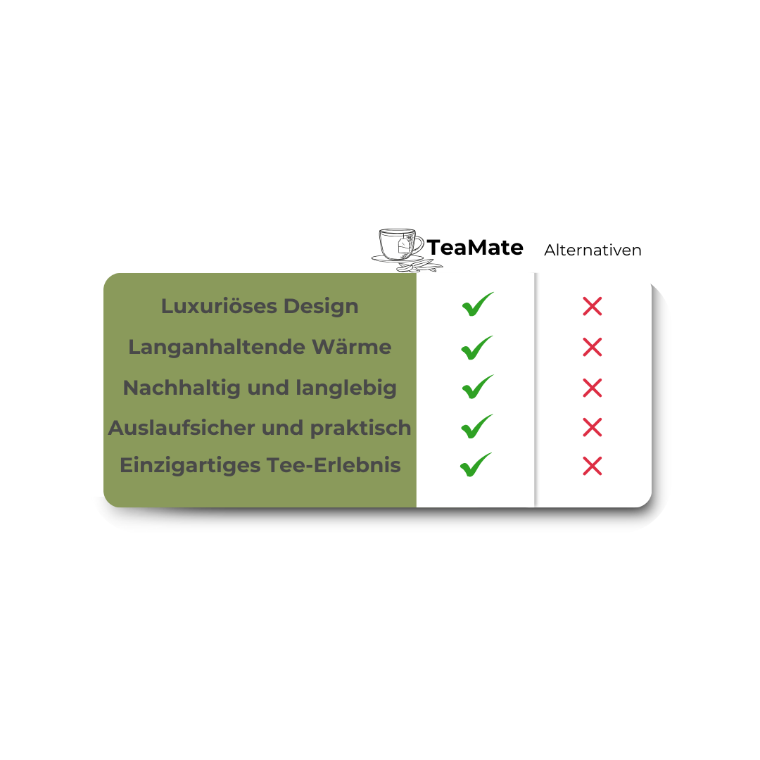 Mit ihrem stilvollen, dezenten Design ist die TeaMate ein echter Hingucker. Sie passt perfekt zu deinem individuellen Stil und unterstreicht deine Persönlichkeit – subtil, elegant, einzigartig.